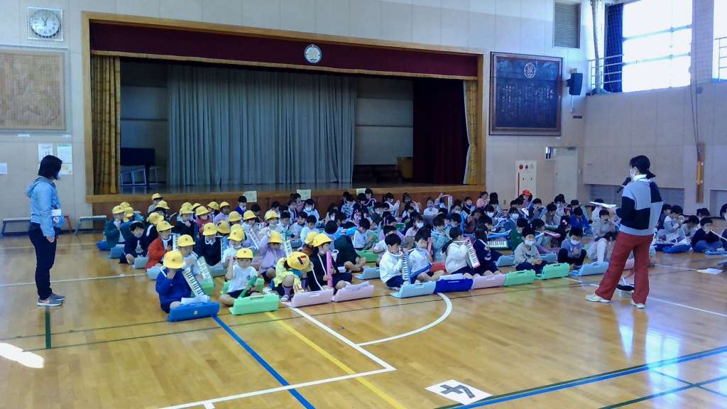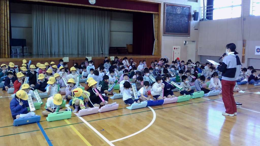 音楽会練習(1年) 本日、3時間目に音楽会に向けて、学年合同で「ぶんぶんぶん」の演奏の練習をしました。 一部のメロディーをクラス毎にパートに分けて演奏するようしました。 少し戸惑う部分もありましたが、吸収も早くすぐに吹けるようになりました。 鍵盤ハーモニカを苦手にしていた子も、冬休みに練習した成果もありとても上手に吹けるようになっていました。 来週も、本番に向けてよりよい演奏ができるよう練習していきます。